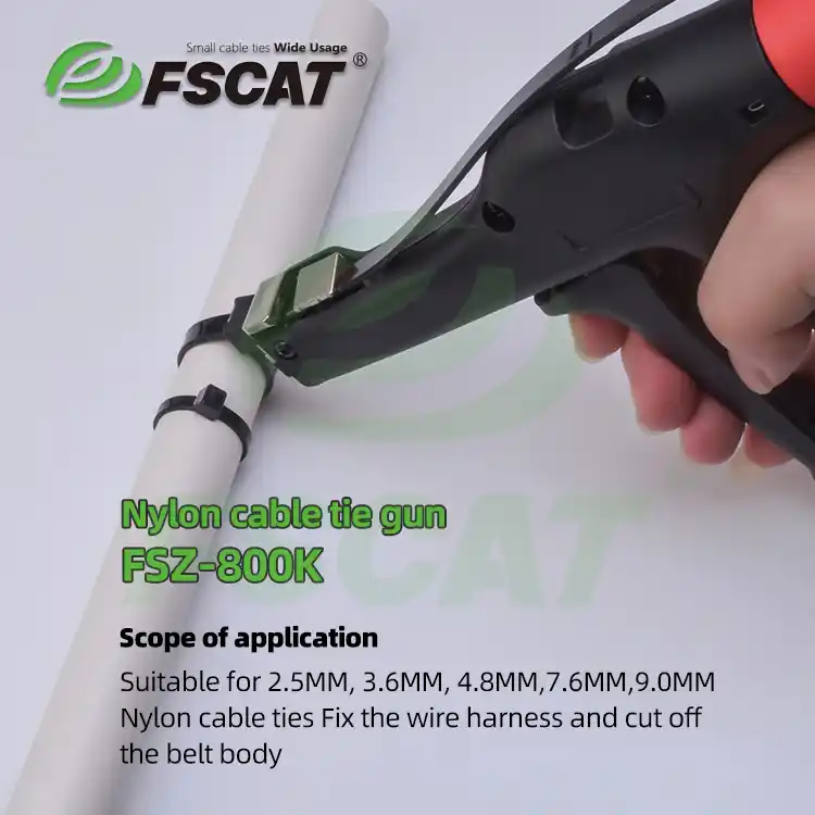 The nylon cable tie tool gun secures and cuts ties efficiently, ideal for cable management in electronics, furniture, and construction. It ensures stable binding pressure and neat cuts, saving time and ensuring organization.