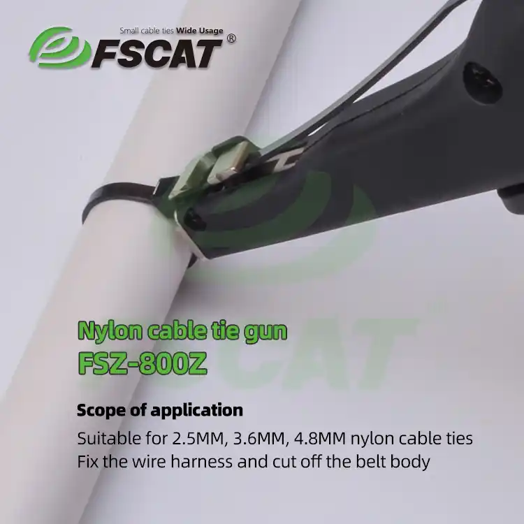The nylon cable tie tool gun secures and cuts ties efficiently, ideal for cable management in electronics, furniture, and construction. It ensures stable binding pressure and neat cuts, saving time and ensuring organization.