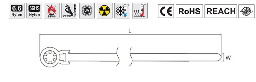Automotive cable ties with threaded heads allow secure fastening using a nut, making them ideal for wiring harnesses on vehicle frames, engines, or dashboards. They offer strong resistance to vibration, heat, and harsh conditions, ensuring reliable cable management in automotive applications.
