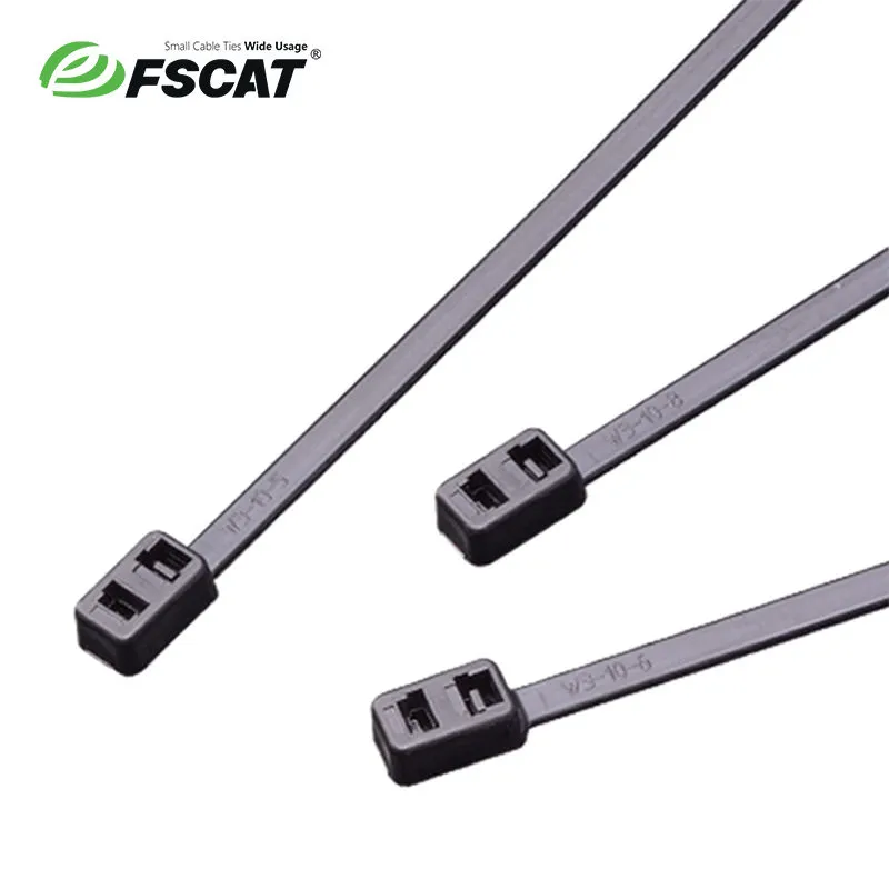 The heads of the double - headed strap are designed as two independent structures with opposite teeth. The strap of the same strap can pass through the two heads in turn to form two independent and connected strapping methods, double - headed, integrated design, easy to operate. Double Head Cable Ties available in bulk 1,000 or 500 pieces bags or smaller 100 pieces bags.