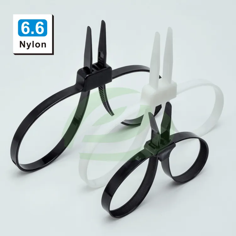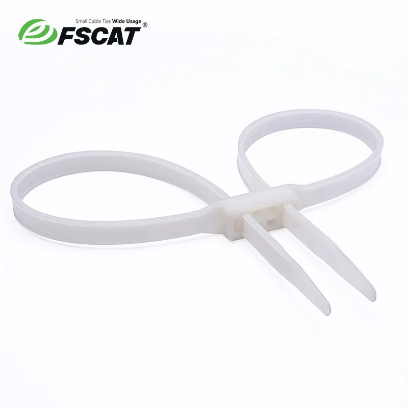 The design of the Double Loop Mounting cable ties is like the connection of two cable ties, which can bind or fix two sets of pipes or cables at the same time. There is a fixing screw hole in the middle of the head. The cable tie can be fixed on the mounting hole according to the needs of the design drawings.,Double Loop Mounting cable ties (Double Head Cable Ties) available in smaller 100 piece bags.