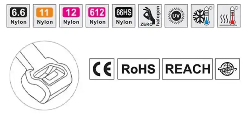 Positive locking is achieved by engaging the pawl with the strap serrations. This allows the cable tie to perform to the publishedminimum tensile strength, that is the load that the cable tie can hold under application,