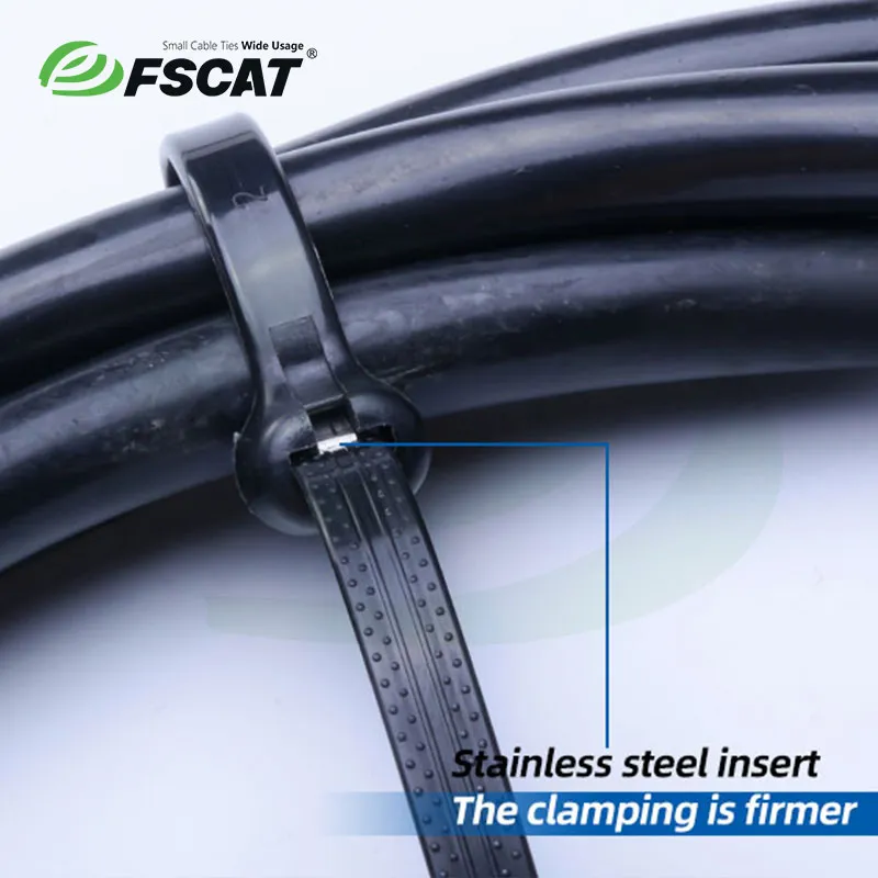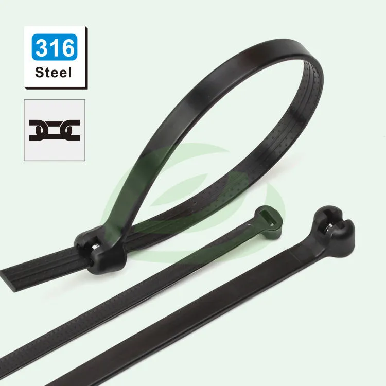 Features: Non-magnetic stainless steel locking device, smooth body design for flexible bundling.